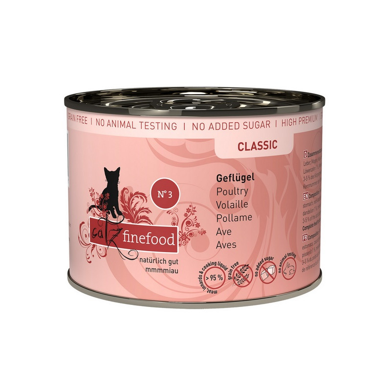Doskonale zbilansowana dieta: Catz Finefood Classic N.03 Drób puszka 200g zapewnia kotu wszystko, czego potrzebuje do zdrowego rozwoju. Zawiera odpowiednie proporcje białka, tłuszczu i węglowodanów, które są niezbędne dla zdrowia i dobrego samopoczucia Twojego pupila.